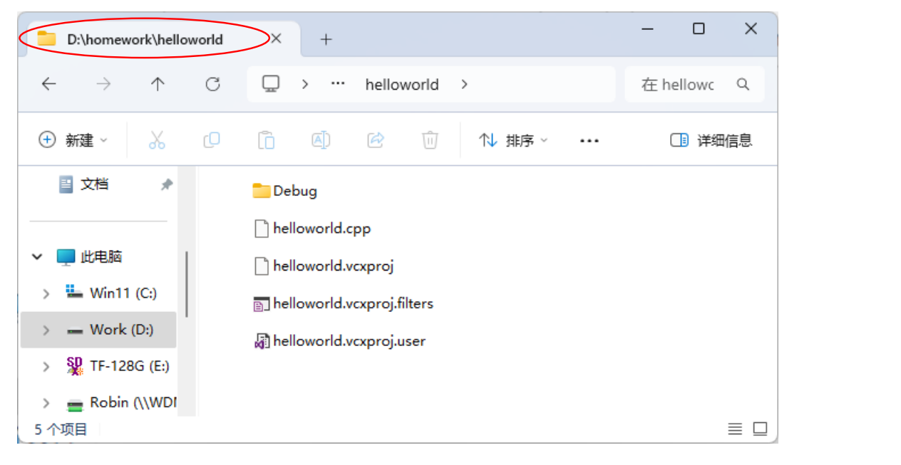 - 本文以 "helloworld" 项目为例,所在目录、文件名等均与 VS 2022 中的例子相同。