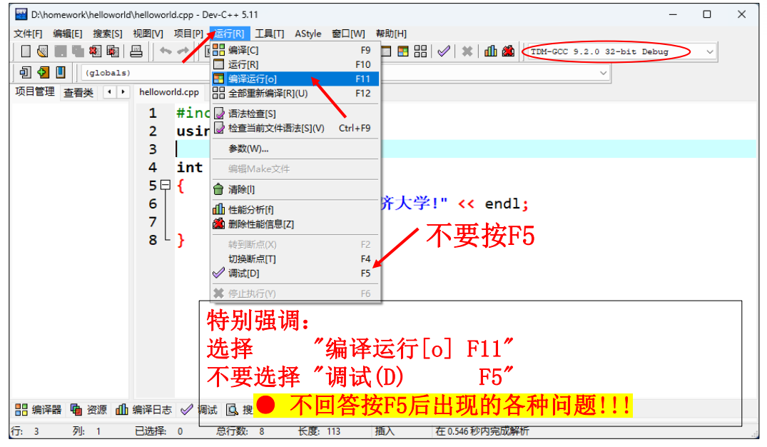 本文档讲述的不是独立使用 Dev C++ 编译 C++ 程序的方法,而是将已经使用 VS 2022编写并调试完成的 C++ 程序再用 Dev C++ 编译一遍